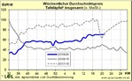 Durch die allgemein sehr gute Nachfrage und das knapper werdende Angebot haben sich die Preise in den letzten Wochen weiter sukzessive erhöht, sodass bereits in KW 19 das gleiche hohe Preisniveau, wie zu Beginn der der Saison 17/18,erreicht wurde. Aktuell liegen die durchschnittlichen Preise für Tafeläpfel Klasse I bei fast 74 €/dt. Mit diesem Preisniveau dürfte aber wohl die obere Grenze erreicht worden sein, zumal nun die Beerensaison beginnt. Die Saison 19/20 wird somit voraussichtlich auf hohem Niveau auslaufen.