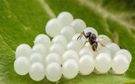 In Asien parasitiert sie die Eier der Wanze und dämmt damit deren Population ein. Ob das auch in der Schweiz funktioniert, soll ein erster bewilligter Freisetzungsversuch mit diesem exotischen Gegenspieler auf einer Birnenparzelle im Kanton Zürich zeigen.