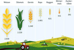 Die Anbauflächen für Silomais und Gerste gingen gegenüber dem Vorjahr um 3,5 bzw. 7,7 % zurück. Dagegen hat der Rapsanbau sich etwas erholt: Nach einem Einbruch um gleich 30 % im Jahr 2019, ist die Anbaufläche seitdem wieder um ein Sechstel gewachsen.