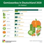 In Deutschland wurde 2020 auf gut 126.000 Hektar Gemüse angebaut, das sind knapp 0,8 Prozent der gesamten landwirtschaftlich genutzten Fläche.