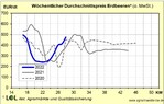 Generell fielen die durchschnittlichen Preise über alle Beeren hinweg deutlich niedriger aus als im Vorjahr. Damals lagen die Preise zwischen 10 % bis 15 % höher, wobei dieses Jahr allerdings auch über 30 % mehr Beeren angeliefert wurden.