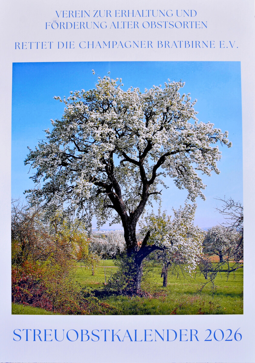 von Walter Hartmann erschienen am 29.11.2025Der Wandkalender hat ein Format von 48 x 34 cm und ist damit nicht nur ein besonderer Wandschmuck und auch ein empfehlenswertes Geschenk, sondern auch ein Beitrag zu Erhaltung der heimischen Streuobstwiesen. Der Kalender wird ehrenamtlich erstellt und die aus dem Verkauf anfallenden Erlöse fließen in Projekte zur Erhaltung der Streuobstwiesen. Unser neuestes Projekt ist die Züchtung resilienter Mostbirnensorten, d. h. Sorten die krankheitsresistent sind und auch mit dem Klimawandel zurechtkommen.