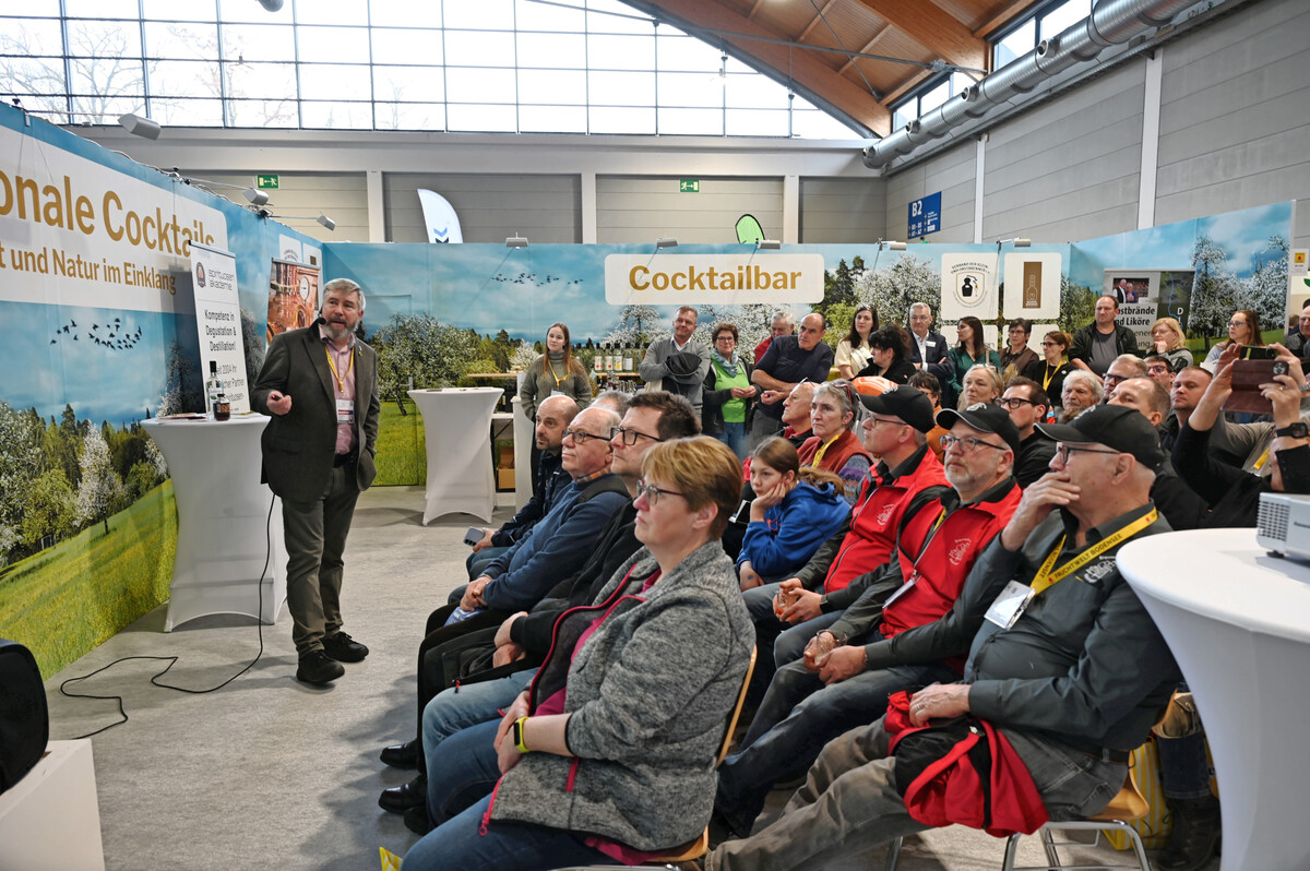Gemixt und vorgestellt von Arthur Nägele und Patrick Braun von der Spirituosenakademie auf der Fruchtwelt. Die Barprofis wandten sich mit den Drinks einerseits ans „normale“ Messepublikum, aber insbesondere an die in Friedrichshafen versammelten Brenner. Was Sinn und Zweck der Aktion war, machten sie in drei Impulsvorträgen, die sie an allen drei Messetagen hielten, deutlich: Es ging darum, den Brennern Basiswissen zu Cocktails zu vermitteln, aber vor allem sollten den Produzenten die Augen für die dahinter stehenden Vermarktungschancen für ihre Obstbrände geöffnet werden. Die Cocktails und die Botschaft kamen an. So hatte man den Eindruck, denn die Vorträge der Spirituosen-Profis waren durchgängig gut besucht.