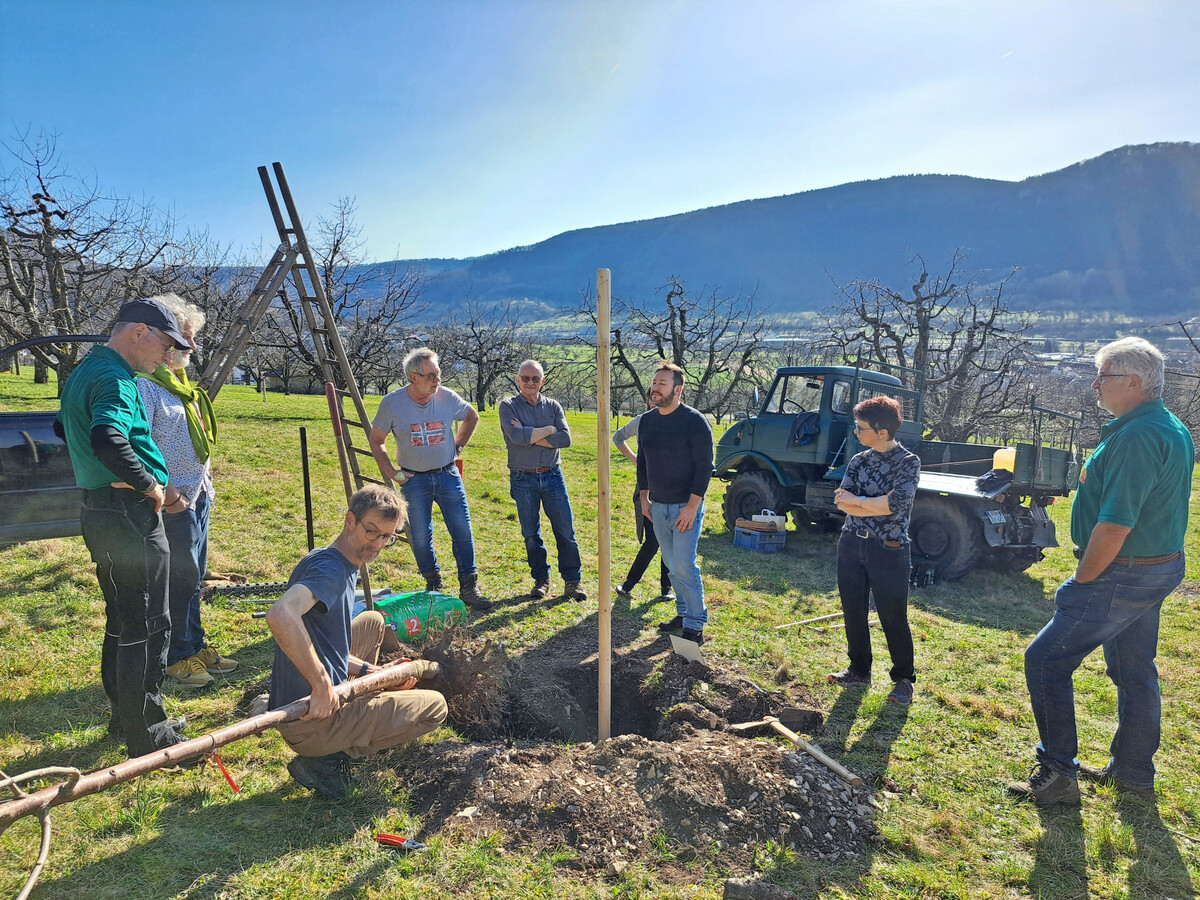 Sonnenschein, klare Sicht und ein Panorama, das wie gemacht ist für Streuobst: Von den Hängen rund um Dettingen schweifte der Blick über Wiesen, die vielerorts bereits von Kirschbäumen geprägt sind. In dieser Kulisse setzte der LOGL mit der Pflanzung der „Streuobstsorte des Jahres“ des LOGL, der Ermstaler Knorpelkirsche. ein sichtbares Zeichen für Sortenvielfalt und Streuobsterhalt.