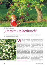Wegen seiner Heilkraft ist Schwarzer Holunder (Sambucus nigra) seit alters her geschätzt. Da die grünen Pflanzenteile, die Rinde, unreife Beeren und die Samen reifer Früchte den Giftstoff Sambunigrin enthalten, der erst bei hoher Temperatur zerfällt, müssen diese Produkte vor dem Verzehr auf 80 °C erhitzt werden. Viele Mythen und Bräuche ranken sich um den Holderbaum. Als „guter Hausgeist“ sollte er Bewohner und Tiere im Stall vor dem Bösen schützen. Seine Eigenschaft, unverwüstlich zu sein, galt als Symbol für starke Lebenskraft, weshalb man früher sagte: „Vor dem Holler sollst Du den Hut ziehen!“ Heutzutage wird Holunder kaum noch im Garten gepflanzt, da die Sträucher sehr hoch werden können. Hier helfen geeignete Erziehungsmaßnahmen,...