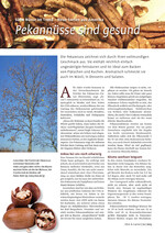 A lle Jahre wieder kommen in der Vorweihnachtszeit die Früchte der Pekannuss (Carya illinoinensis, engl. "Pecan") tütenweise in Deutschland an. Ursprünglich in Mexiko und dem Süden der USA zuhause, werden Bäume der zur Gattung der Hickorynüsse gehörenden Art inzwischen auch in Israel, Brasilien, Australien, Südafrika und Südspanien kultiviert. "Wenn die Walnüsse in ihrer Familie die Würde geerbt haben, dann haben die Hickory- und Flügelnüsse das gute Aussehen mitbekommen", meint Hugh Johnson. Hickorynüsse sehen wie höhere und elegantere Walnussbäume aus und zeigen zudem intensivere Farben, so der englische Baumexperte. Die Pekannuss trägt die süßesten Früchte ihrer Gattung und hat dazu noch die längsten Blätter aller Hickorys.