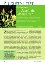 Silberkerzen gehören zu jenen Stauden, die zunächst einmal relativ unspektakulär aussehen, wenn man sie im Topfquartier einer Staudengärtnerei sieht: Zarte Blütenkerzen, aus winzigen Einzel-blüten zusammengesetzt, schweben auf drahtigen Stängeln über grob gefiedertem dunkelgrünem Laub. Wer sie aber schon einmal in der Abenddämmerung vor der Kulisse eines Gehölzgürtels oder vor einer Eibenhecke gesehen hat, revidiert sofort seine Meinung. Denn hier werden Silberkerzen zu magischen Gestalten, von denen ein besonderer Zauber ausgeht. So hat sich mir zumindest meine erste Begegnung mit ihnen eingeprägt. In einem Park war ein großes Beet im Schatten hoher Bäume angelegt, bei dem im Spätsommer hohe Silberkerzen die Hauptrolle spielten. Aus der...