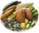 Heute ist sie nahezu weltweit ein beliebtes Gemüse, wobei bei uns neben den Einlegegurken die gleichförmigen, zarten Schlangengurken aus dem Gewächshaus im Vordergrund stehen. Doch abseits davon gibt es eine beachtliche Vielfalt an Formen und Farben, etwa nahezu weiße Gurken und neben den länglichen und walzenförmigen Typen auch keulenförmige sowie sehr kurze und kugelige Formen. Weitere Informationen und eine umfangreiche Rezeptsammlung: www.nutzpflanzenvielfalt.de.