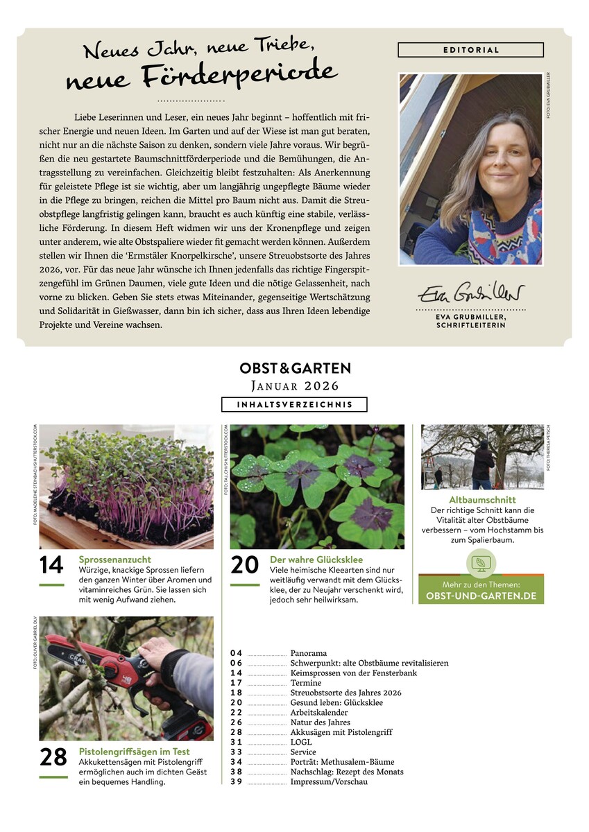 Gesamtes Inhaltsverzeichnis anzeigenTesten Sie das E-Paper sowie alle digitalen Inhalte von Obst & Garten...